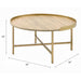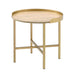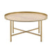 Explore modern simplicity that easily improve your overall aesthetic. The Mithea Table features a round table top with cross bar styled metal base, offering a balance of grace and strength. An alluring gold finish showcases it's clean-lined silhouette. With unique tray-style table top design, the table will become an stylish and irreplaceable element of any interior.