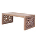 Rustic Carved Wood Coffee Table, Handcrafted Look With Ornate Side Panels - Natural