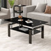 Tempered Black Glass Coffee Table, 2-Layers Tea Table - Black