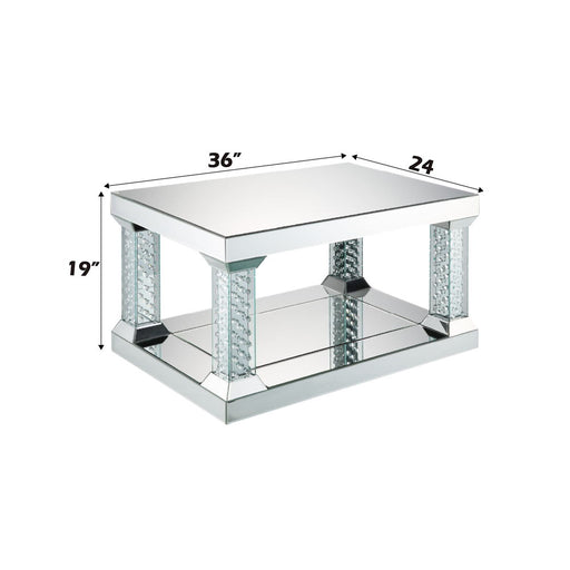Nysa - 36" Coffee Table - Mirrored & Faux CrystalsProduct Features Rectangular Coffee Table Storage: Open Compartment (Mirrored Base Shelf) Bev...