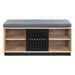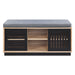 The Gamaliel bench with storage adds storage and seating space to maximize its use. Perfect in a living room or mudroom, store shoes, and other grab-and-go items to make mornings more seamless. The oak frame and espresso slatted doors and base are paired with the gray linen seat cushion to create a simplistic Scandinavian design.