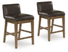 Cabalynn - 7 Pc. - Rectangular Dining Room Counter Table, 6 Upholstered Barstools - Light Brown