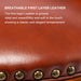 - High-quality Material: Seat surface made of cow top leather with high-density sponge filling for comfort. Features a curved backrest and wood frame.