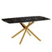 Luxurious Marble Patterned Dining Table With en Metal Fork Legs, Tempered Glass Top - Black / Gold