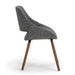 - Mid Century Modern styling includes comfortable curved padded seat and seat back, walnut veneer on bentwood frame and angled legs