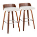 Maya - Mid-Century Modern Fixed Height Barstool With Swivel With Square Footrest (Set of 2) - Walnut / Cream