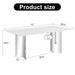 Modern Minimalist Dining Table With Imitation Marble Glass Surface And Metal Legs - White