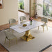 Modern Rectangular Dining Table For 6 - 8, Plated Hourglass Base, Sintered Stone Top - Gold / White