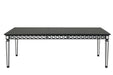 KD, Rectangular Leg Table, NO Storage, Extension Top(1 x 18" Leaf) Wooden Top Apron, Raised Geometric Apron Trim, Beveled Mirror Inlay, Tapered Leg; CONSTRUCTION - Wooden TOP: Wood (Poplar+Rbw), MDF, Poly-Resin, Mirror, APRON: Wooden+Mirror (Raised Geometric Trim) Wooden Tapered Leg w/Mirror Inlay