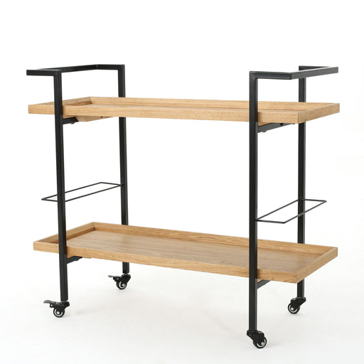Wood And Aluminum Bar Cart With 2 Shelves - Oak / Silver