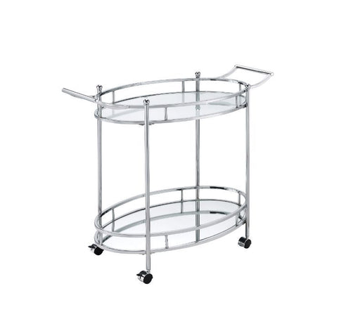 Inyo - Serving Cart - Clear Glass & ChromeProduct Features KD Oval Serving Cart 3 Tier Shelf 5 mm Tempered Glass Case: 1Pc/1Ctn Finish: Clear G...