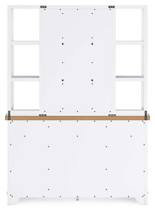 This server and hutch delivers casual style with substance. A classic white finish and butcher block oak veneer top add a relaxed vibe to a delicio...