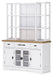 - Server with 2-tone finish (white finish; butcher block oak veneer top with natural finish)