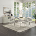 The Ingram collection brings modern elegance to your home with its sophisticated pieces. The rectangular dining table and side chairs feature a light gray finish, creating a serene dining atmosphere. The server, with its ceramic top and light gray finish, offers stylish functionality. Complementing the set, the round coffee table and end table add a touch of refinement. This collection seamlessly blends contemporary design with practical elegance, perfect for enhancing your living and dining spaces.