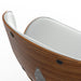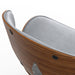 - Mid Century Modern design features comfortable curved padded seat and seat back, walnut veneer on bentwood frame, metal back support bar
