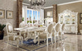 Irresistibly inviting, the Versailles collection displays the unrivaled beauty of the traditional dining. The dining table reflects highly decorative base with oversized scrolled feet, and the upholstered and tapestried chairs with deep button tufted and Nailhead trim accents add classic character and represents luxurious detailing. This collection offers three styles of tables and two finishes for you to choose, and it would be perfect for any formal dining room.