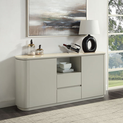 Dillon - Server With Marble Top - Natural / WalnutProduct Features Server with 4 Shelves; 4 Door Real Carrara Grey Marble Dillon - Server With Mar...