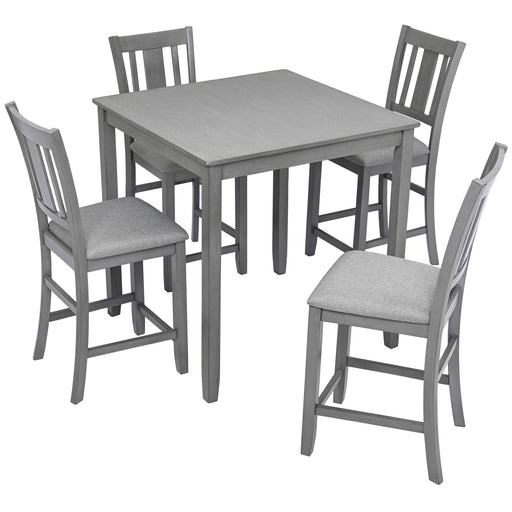 5 Pieces Dining Table Set, Counter Height Kitchen Table Set With Square Table And 4 Upholstered Chairs