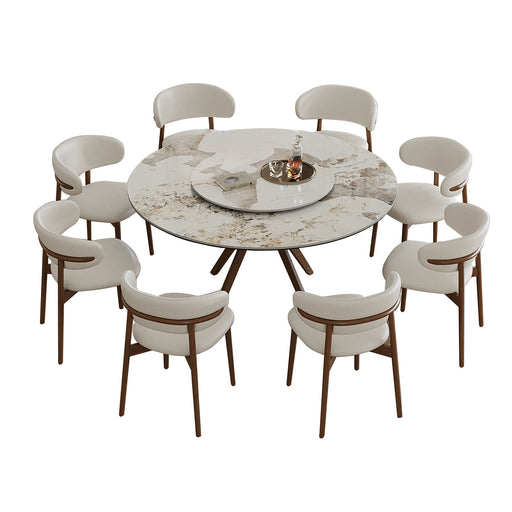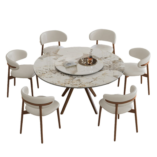 Modern Sintered Stone Dining Table With Round Turntable, Metal Pedestal, And Chairs