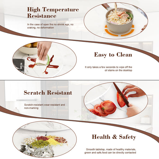 59-Inch Scratch-Resistant Tabletop: White sintered stone top with faux marble finish offers superior resistance to scratches, stains, and heat up ...