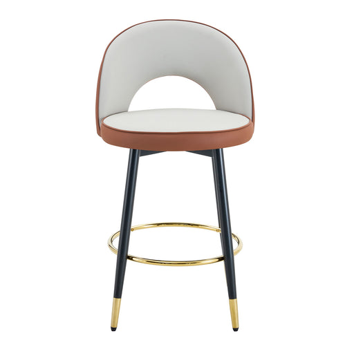 This counter height swivel bar stool is the perfect blend of casual and contemporary styles. Its sleek light brown faux leather pairs with a dark g...