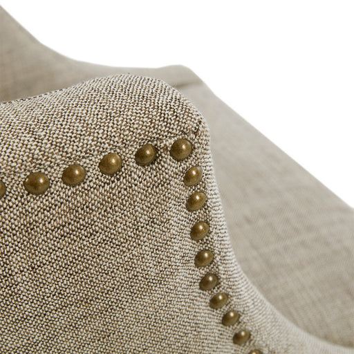 Elegant Design: Features a light grey fabric upholstery with bronze nail head trim for a rich accent. Sturdy Construction: Made with solid wood fo...