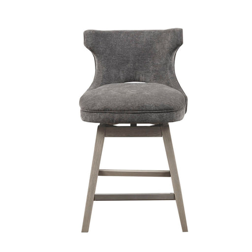 Swivel Seat: Textured grey upholstered swivel seat for comfort and style. Frame Design: Lightly distressed grey frame for a rustic appeal. Footres...