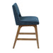 - Warm Appeal: Pecan wood finish complements the navy upholstery beautifully.