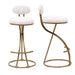 Modern S Shaped Bar Stools (Set of 2) With Backrest Floral Print Upholstered Dining Chairs Counter Height For Kitchen Island - Gold & White Print