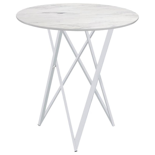 • Bexter - Faux Marble Round Top Bar Table - White And Chrome Unique Piece Furniture
