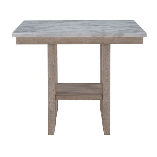 Perfect portion. Striking a simply chic pose, this dining room counter table serves up high style on a smaller scale. Its antiqued gray wash finish...