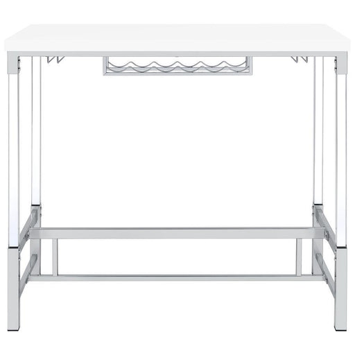 Add a flash of panache to your rec room or home bar with this modern bar table. Contemporarily designed with chrome legs and glass top. Crisp, clea...