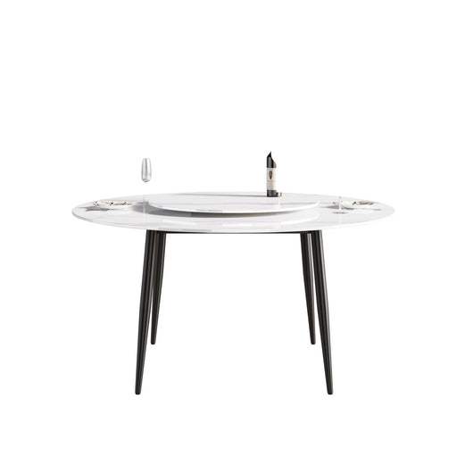 Elegant Design: Features a modern round shape with a sleek white and black finish. Durable Surface: Made from sintered stone, the tabletop is resi...