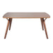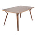 - Design & Style: The Folia Dining Table features a Mid-Century Modern design with a rectangular top, rounded edges, and splayed tapered legs, offering a clean and contemporary aesthetic.