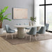 Introduce our Laela dining set, featuring an oval wooden top and sturdy double pedestals, combines elegance with modern design. The fixed table top provides a stable surface for your dining needs, while the upholstered side chairs offer comfort and style. Perfect for creating memorable dining experiences, the Laela collection transforms any dining space into a sophisticated haven.