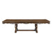 Traditional design with modern accents, the Latisha pedestal dining table is the perfect merging of contemporary and classic. The antique oak finish with the hand-brushed silver trim accentuates the elaborate floral moldings that are showcased throughout the trestle pedestal base and apron. Make the most out of this dining table with the included extension leaf for all your dinner guests.