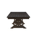 Combining classic and contemporary elements, the bold curves of the Maisha dining table provide both an elegant contrast and a unique look to any dining area. The beautiful rectangular trestle table features a wood base with decorative scrolled motifs in a rustic walnut finish.
