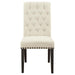 An exceptional dining set is inspired by European decor for a gorgeous dining space. The expansive rectangular tabletop is supported by a dual pedestal base with a stunning silhouette. Find upholstered dining chairs with a rolled backrest design for a traditional chest. The chairs are further enhanced with nailhead trim along with the frame. Supported on tapered legs, the dining seats are bound to provide you with a delightful dining experience.