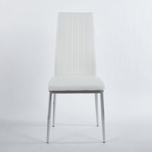 Modern Chrome Finish: Sleek metal legs deliver a contemporary look that enhances any dining environment White Seat Design: Clean and neutral seat ...