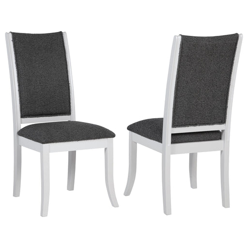 Dimensional grey upholstery creates engaging contrast and depth for this set of two modern dining chairs. Each boasts a tall, refined silhouette th...
