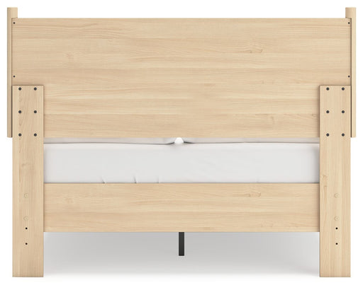 Clean-lined and contemporary—but far from stark—this panel bed is a fresh style awakening. Pairing a light finish with replicated oak grain and tex...
