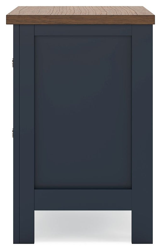 Add homespun charm to your restful retreat. A modern take on a timeless silhouette, this nightstand pairs a dark slate blue finish with a light bro...