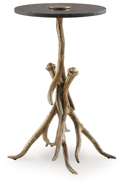 Classic in design with a dash of textural appeal, this accent table provides both flair and function. Ryandale - Accent Table - Antique Brass Finis...