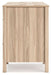 - Open storage behind single cabinet door