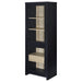 Elevate your space with a media tower that blends quiet elegance and thoughtful design. Wrapped in a bold black finish, this two-door cabinet reveals a rich interior contrast and graceful utility. Framed glass doors showcase your favorite pieces above, while a hidden drawer below offers a secret haven for everyday essentials. Whether you're curating a display or storing away the everyday, this tall, slender silhouette adds a refined presence to any corner it inhabits.