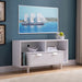 - Design & Structure: The modern TV stand features a sleek design with two U-legs providing a stable base. It is constructed from particle board, offering a contemporary look in a clean white finish.