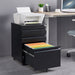 Contemporary 3 Drawer Mobile Filing Cabinet With Lock, Metal Office Storage For Legal / Letter Size - Black