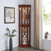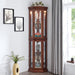 Corner Curio Cabinet With Lights, Adjustable Tempered Glass Shelves, Mirrored Back, Display Cabinet (E26 Light Bulb Not Included) - Light Walnut