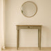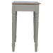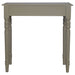 - Hand Painted Writing Desk - This one drawer writing desk is constructed from 100% solid mango wood and has a french grey hand-painted base and a stained oak-ish top. Other features include hand-carved flute legs to add to the vintage French style and a shell handles for easy access into the drawer. The perfect addition to any home.