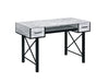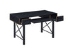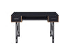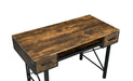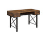 The Settea Desk bring a mix-and-match look with distressed casegood and black metal frame. Found atop a double pedestal base, It is accented with metal trim and "X" shpaed support for industrial details. The rectangular table is designed for a spacious top, while rustic finish will warm your workplace with natural earth tone. Two drawers on both sides help you clean the table top, and a keyboard tray under the top is perfect for a PC user.